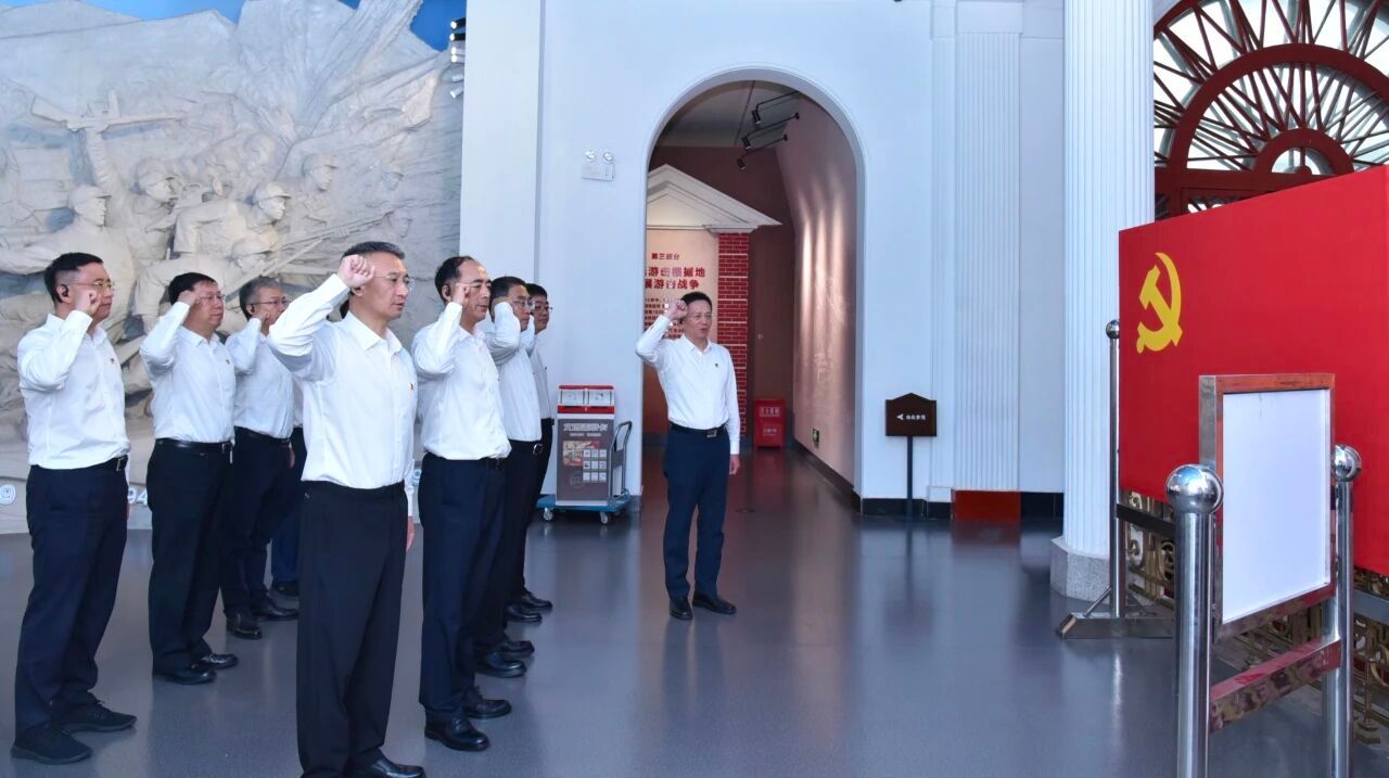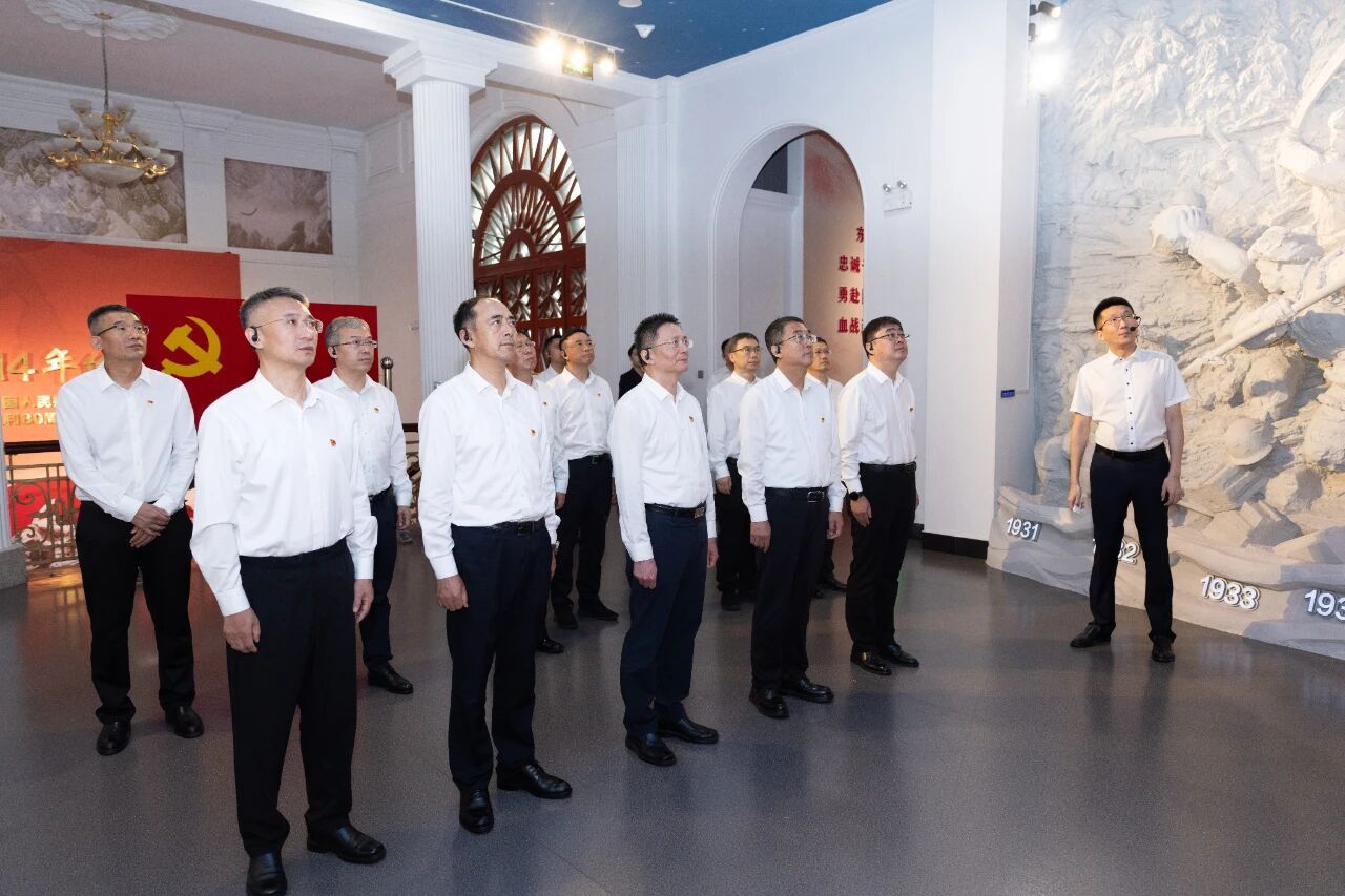 參觀最后,全體人員面向黨旗,莊嚴重溫入黨誓詞,在鏗鏘有力的入黨誓詞聲中,回溯入黨之初對黨和人民的莊嚴承諾,牢記初心使命。