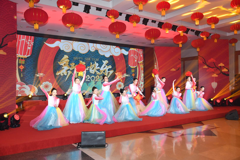 團拜會上歡聲笑語回蕩,干部職工自編自演的舞蹈、歌曲、情景劇、國風展示等節目精彩紛呈,充分展現了廣大干部職工為國資央企事業拼搏奉獻的精神風貌,贏得了陣陣熱烈掌聲,會場充滿了歡樂、祥和、喜慶的節日氣氛。最后,大家齊聲高唱《中國 中國 鮮紅的太陽永不落》,將氣氛推向高潮。