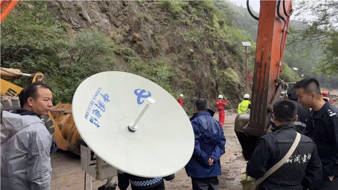 中國(guó)電信工作人員開展應(yīng)急通信