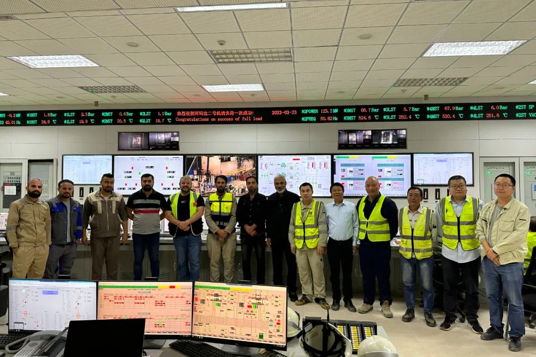伊拉克阿瑪拉單循環改聯合循環擴建項目自2023年3月14日2號機組實現并網后,單循環側天然氣供應不足導致燃機無法提供足夠負荷,造成聯合循環側2號機組無法進行高負荷的電氣試驗。項目團隊與業主密切溝通,積極協調燃機負荷,創造調試窗口期,打磨細節,做好各項準備工作,在連續奮戰2個晝夜后,順利實現2號機組滿負荷運行的重要里程碑。