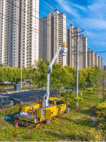 國網(wǎng)河北電力員工對(duì)10千伏馮方線開展帶電作業(yè),保障度夏期間電網(wǎng)安全穩(wěn)定運(yùn)行。