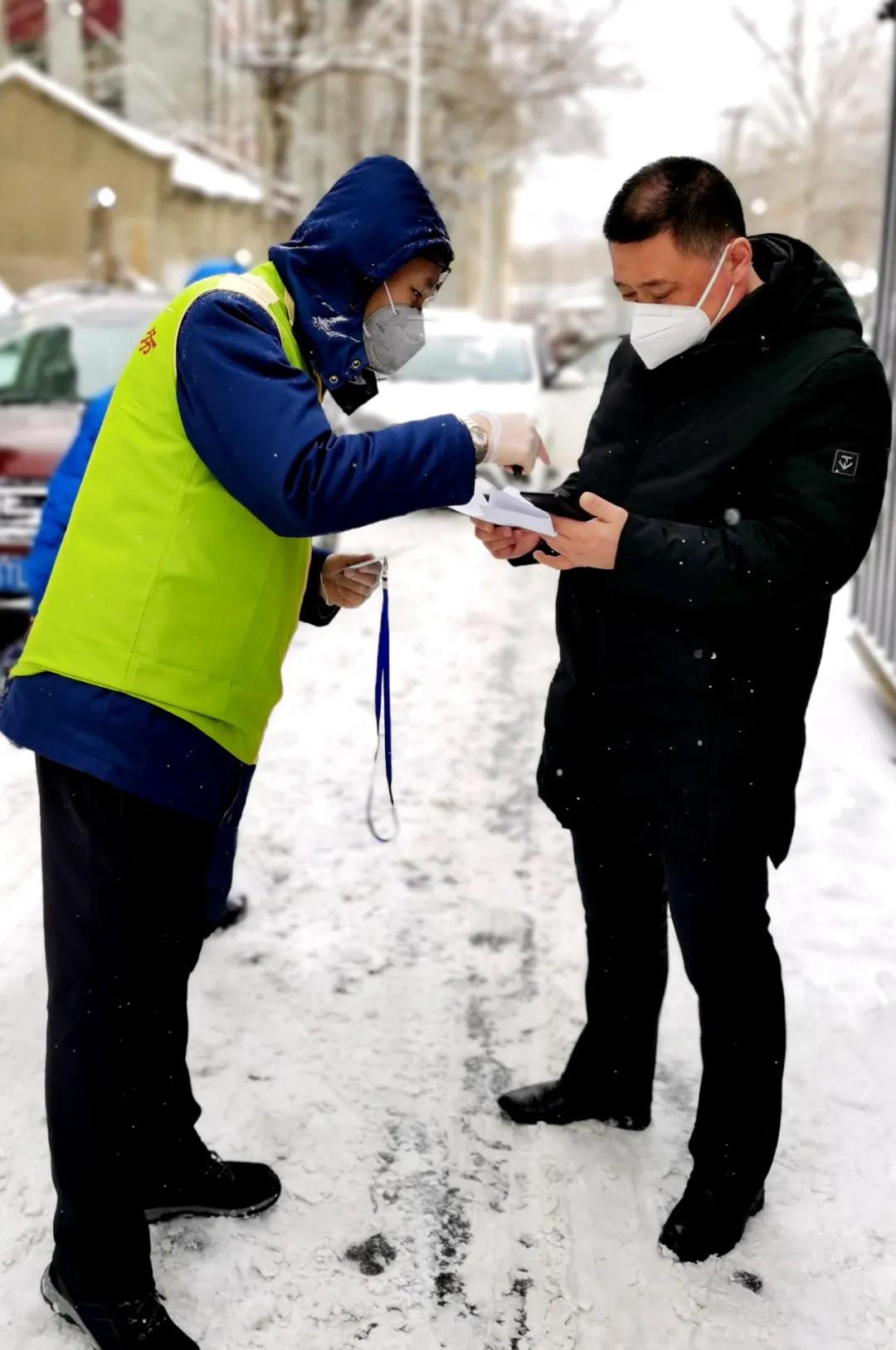 “實(shí)業(yè)公司楊學(xué)宇,報到!”這是2月21日傍晚,樂園社區(qū)內(nèi)響起的報到聲,之所以安排在晚上參加下沉社區(qū)疫情防控工作,是因?yàn)樗滋煸趩挝贿€有大量的日常工作要做。這天晚上他就剛剛協(xié)調(diào)完部分需要復(fù)工單位需要的應(yīng)急防控物資。從疫情爆發(fā)以來,他平時的重點(diǎn)工作就是組織做好哈電集團(tuán)疫情防疫工作的要求傳達(dá)、任務(wù)落實(shí)和宣傳動員等工作。楊學(xué)宇,哈電集團(tuán)實(shí)業(yè)公司系統(tǒng)黨群工作處副處長、辦公室副主任,一名80后年輕干部。 第二天是周六,一大早他早早起床,加入到樂園社區(qū)防疫檢查站卡點(diǎn)志愿服務(wù)工作中,給出入小區(qū)的人員測量體溫,做好登記。此時,天空中飄起了雪花,雪越下越大,他依然矗立在崗位上,忙碌著,手凍僵了他就攥攥拳頭、腳冷了就踮起腳尖跺跺,一刻不停的工作。社區(qū)的工作人員跟他說可以輪班站崗,冷了累了就進(jìn)屋歇一歇,換其他人站崗,都被他拒絕了。“平時工作忙,也沒能第一時間來社區(qū)做志愿者,今天總算有空,時間寶貴,能多干一些就多干一些!”社區(qū)的工作人員都豎起了大拇指,對他稱贊有加,他卻一臉嚴(yán)肅的說:“我家也住這附近,為大家其實(shí)就是為我家。在這場疫情防控阻擊戰(zhàn)中,全國人民都是一家人。”